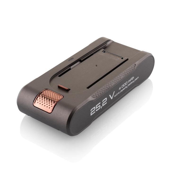 - Nagyteljesítményű, könnyen cserélhető Li-Ion akkumulátor 25,2 V, 4000 mAh
