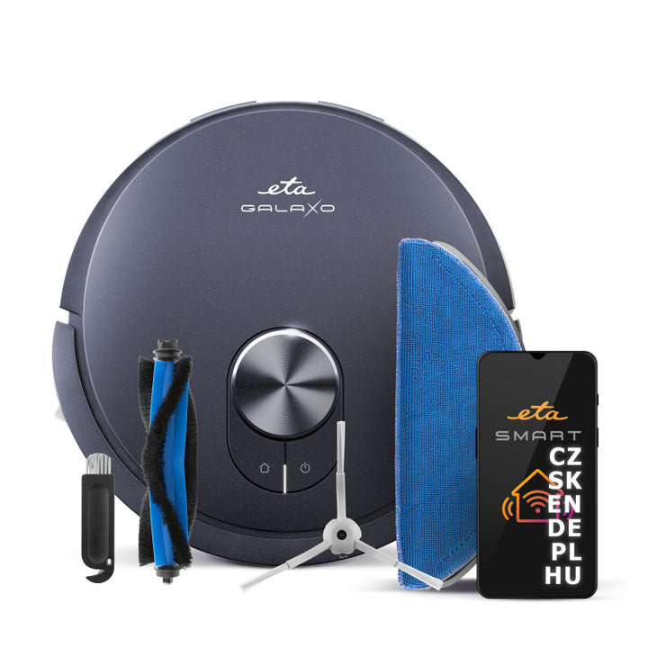 Az ETA Galaxo egyszerre képes porszívózni és felmosni, így még hatékonyabbá teheti a takarítást. A biztonságos működést leesés elleni szenzorok, valamint az ütközések elkerülésére fejlesztett ANTI-COLLISION rendszer segíti, amely kíméletesen navigál a bútorok és egyéb akadályok között. A készülék akár 1,5 cm magas küszöbön is képes áthaladni, alacsony, 9,9 cm-es magasságának köszönhetően pedig a legtöbb bútor alá is befér. A felmosás elektronikus vezérlésű, és Y-alakú mozgással is működhet, ami alaposabb tisztítást tesz lehetővé.