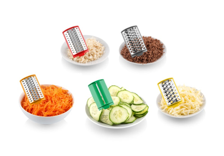 Az ETA Gratta reszelő cserélhető reszelői olyanok, mint a LEGO a főzéshez! Kombinálhatók, így pontosan azt az állagot érheti el, amire szüksége van. Szüksége van krumplira a rakott krumpliba? Kombinálja a finom és a durva reszelőt, és elérheti a legjobb ízt. És ez még nem minden! A kiegészítőinkkel könnyedén megbirkózik bármilyen zöldséggel, gyümölccsel, sajttal vagy csokoládéval.