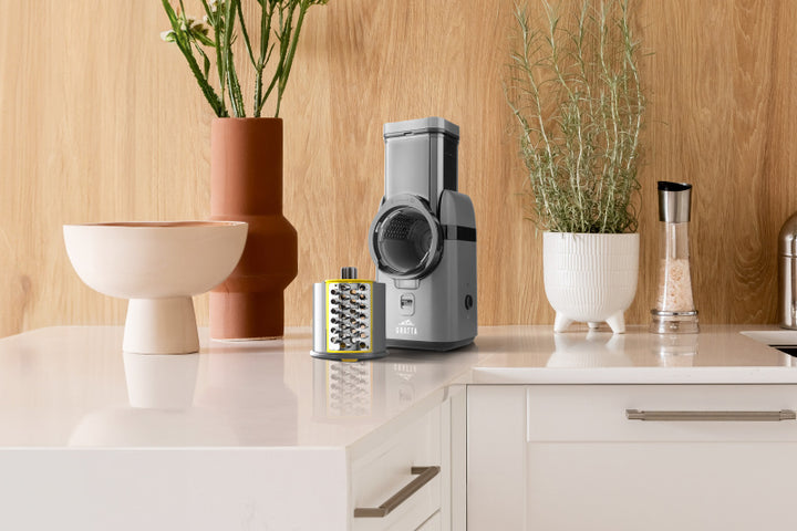 A hagyományos reszelés biztosan nem a kedvenc tevékenysége, igaz? Felejtse el a lereszelt ujjaikat, és üdvözölje otthonában az ETA Gratta elektromos reszelőt.