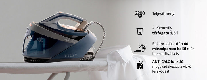* Gyorsan melegedő gőzfejlesztő - 40 másodperc alatt készen áll a vasalásra
