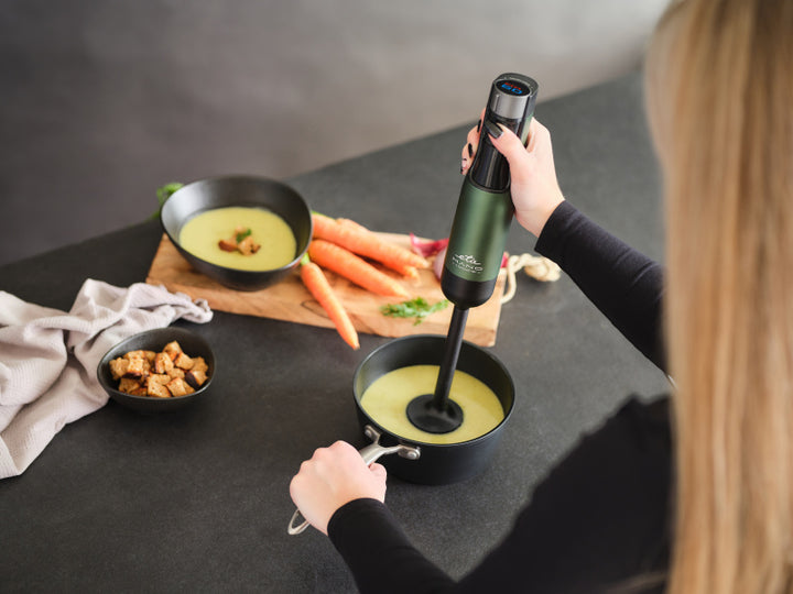 Ennek a mixernek a szíve egy erőteljes és rendkívül csendes 1 000 W-os DC motor, amely lehetővé teszi a könnyű és gyors mixelést, habverést, aprítást és zúzást. Akár smoothiehoz szertené a gyümölcsöt finoman pürésíteni, akár zöldségekből szeretne gyorsan sima levest készíteni a mixer mindezt teljes könnyedséggel elvégzi.