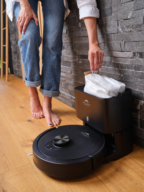A nagy kapacitású zsák révén a porszívó hetekig képes takarítani anélkül, hogy ki kellene üríteni a szennygyűjtőt. A zsák megteltével egyszerűen ki lehet venni és újra cserélni – az ETA623900010 porszívózsákok (3 db/csomag) könnyen beszerezhetők. Az elszívó állomás így jelentősen növeli a takarítás kényelmét és hatékonyságát, és ideális megoldás allergiások számára is.