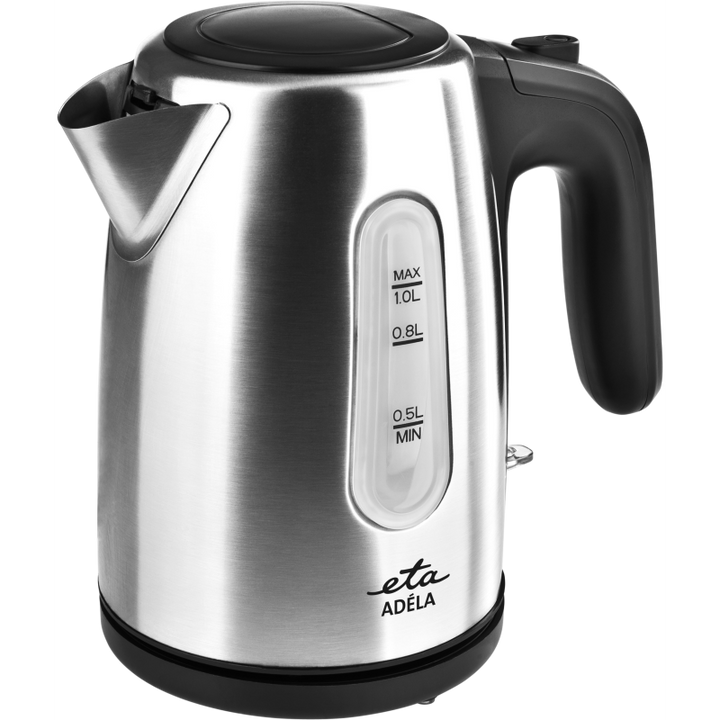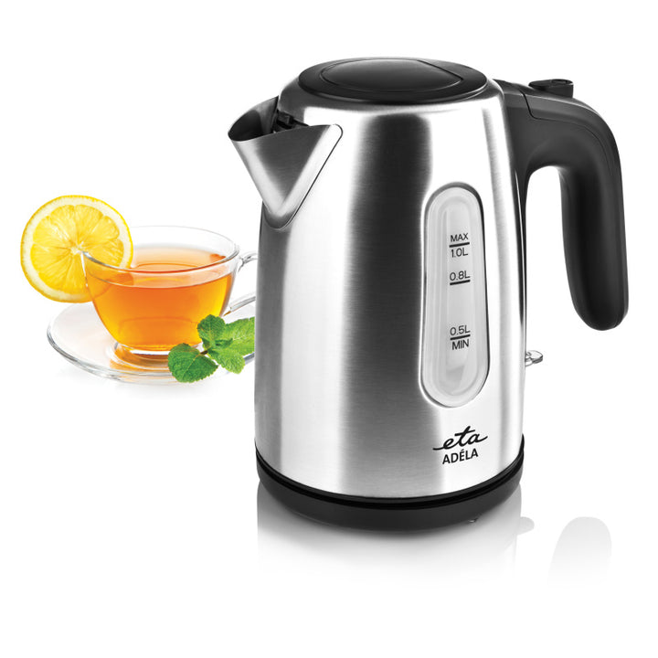 Az ETA Adéla kicsi rozsdamentes vízforraló akár 1 liter vizet is képes felforralni. Kétoldalú vízjellel, működési fényjelzővel és rejtett fűtőelemmel felszerelt.